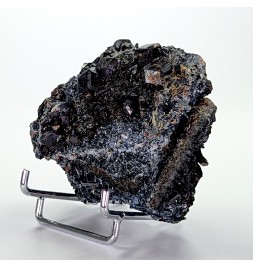 Pour les amateurs de minéraux sombres ! Cristaux de grenat var. melanite sur des cristaux de pargasite. Pièce bien cristallisée.