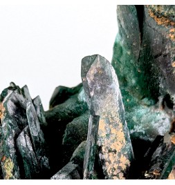 Intéressante pseudomorphose de cristaux d'azurite bien définis en malachite.