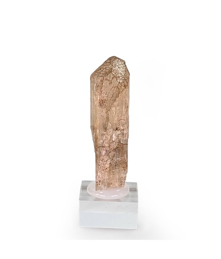 Cristal gemme de meionite (un minéral du groupe des scapolites), terminé et de couleur jaune.