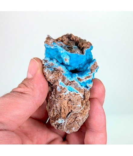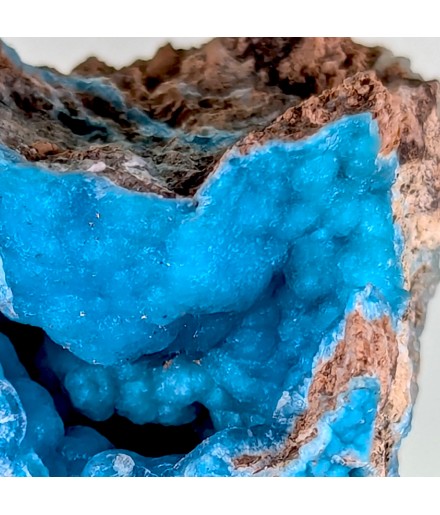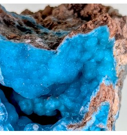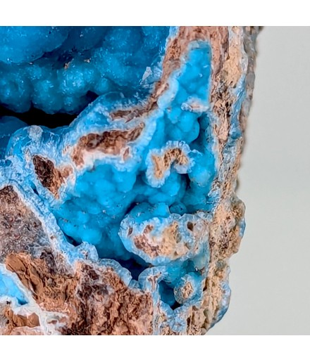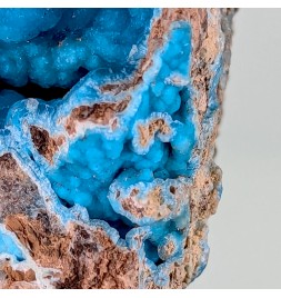 Jolie couleur bleue pour cette hémimorphite botroïdale contenue dans une géode.