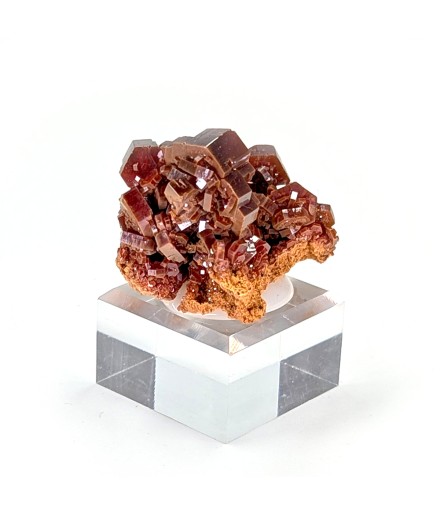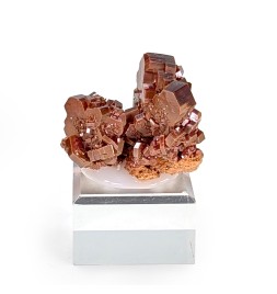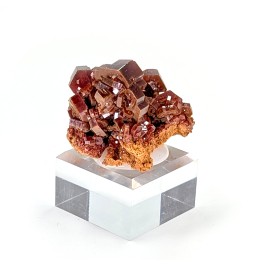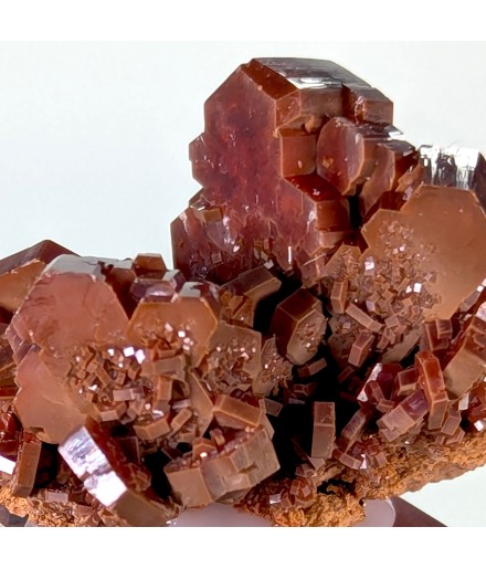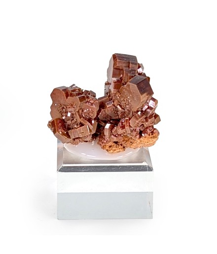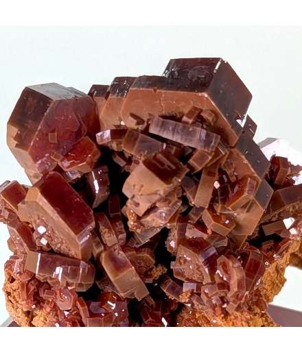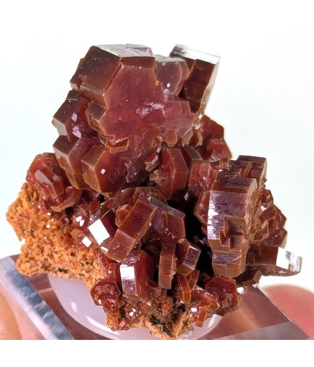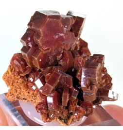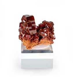 Esthétique petit groupe de cristaux de vanadinite brillante, de couleur soutenue.