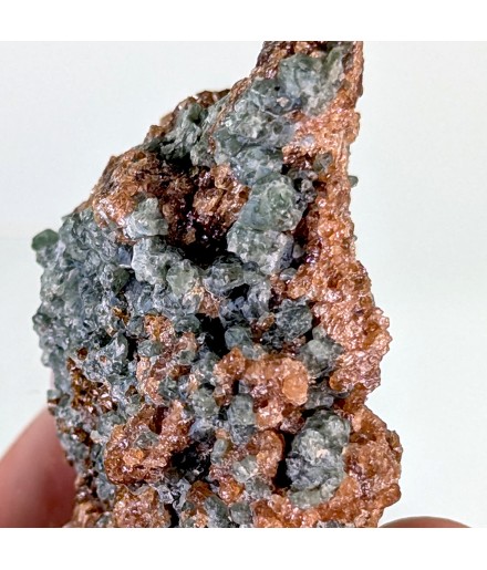 De jolies couleurs pour cet agglomérat de diopside vert et de grenat andradite.
