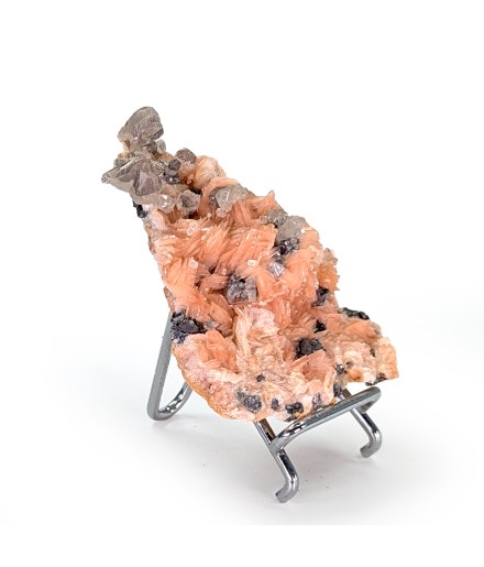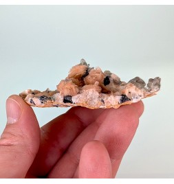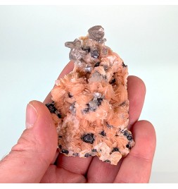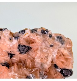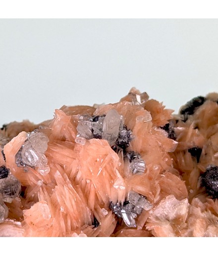 Fine pièce associant de la cérusite, de la fine baryte saumon et de la galène.