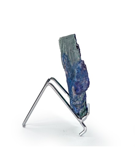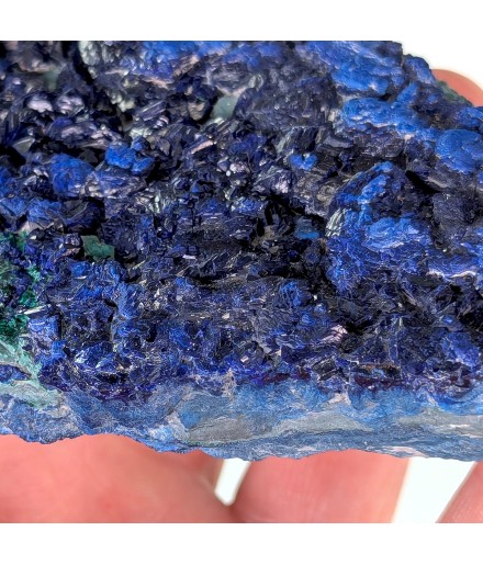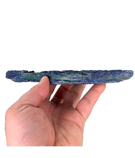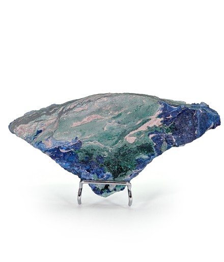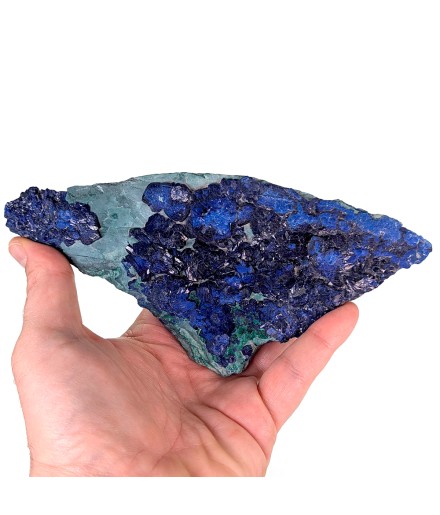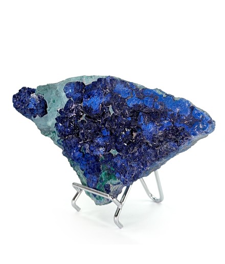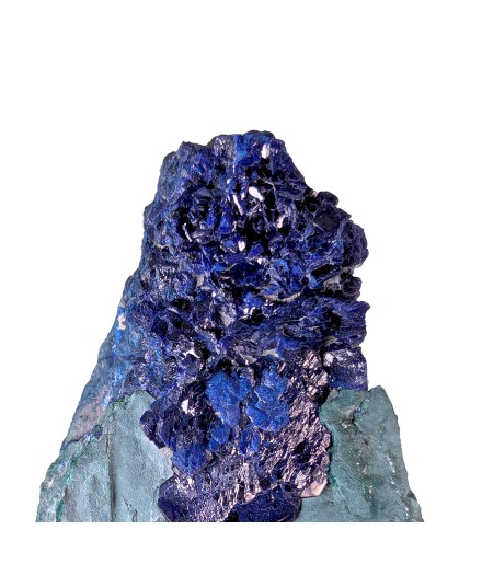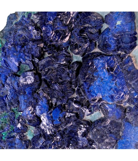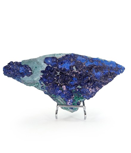 Plaque offrant un beau contraste entre une gangue verte riche en malachite et une double cristallisation d'azurite offrant deux nuances de bleu.