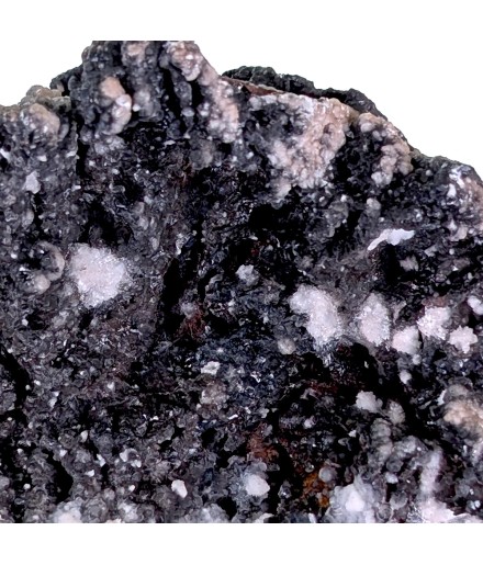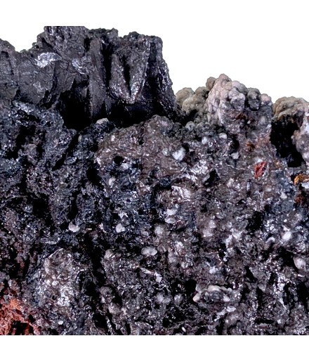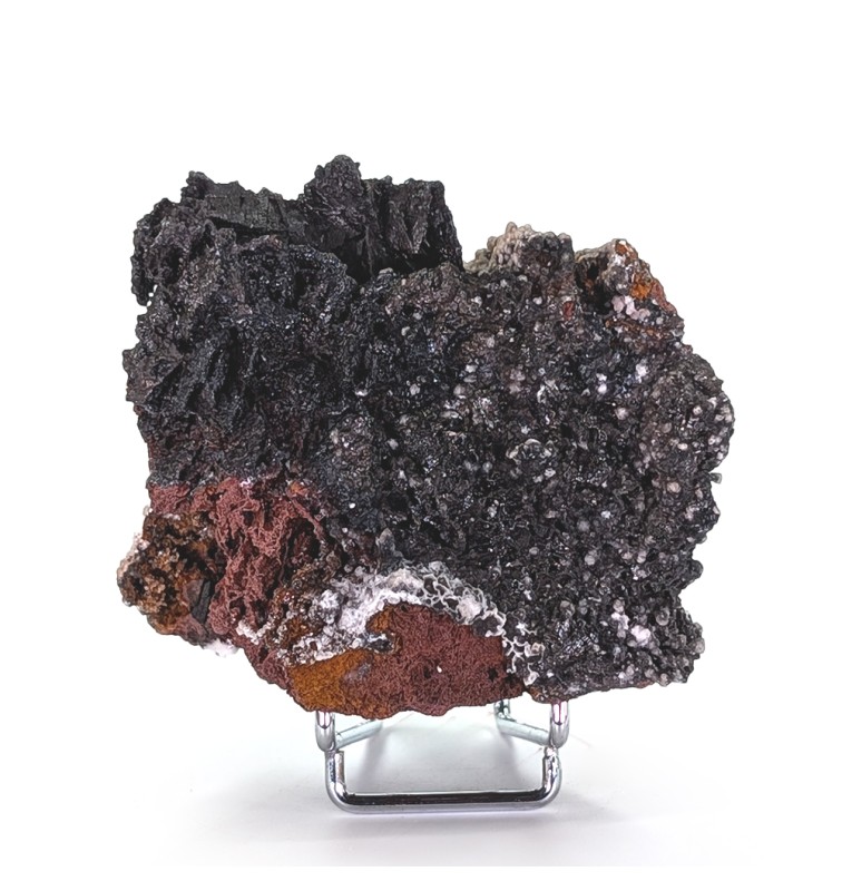 Intéressant échantillon de goethite, présentant sur une face un recouvrement partiel de calcite.