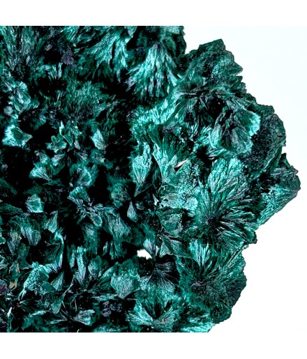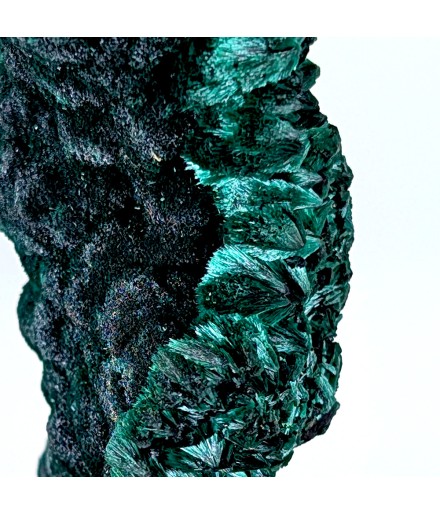 Superbe malachite fibreuse à la brillance marquée et à la couleur intense, présentant un aspect différent sur chaque face.