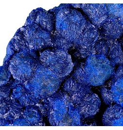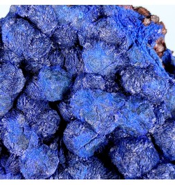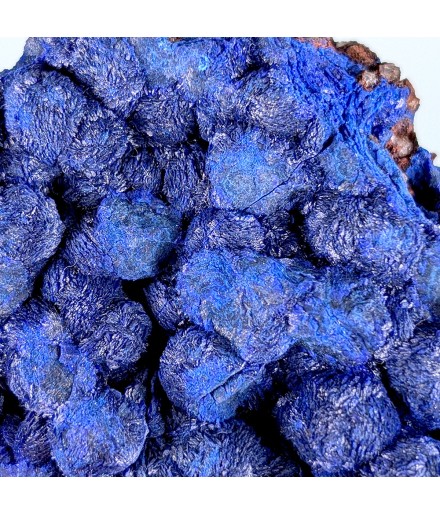 Plaque d'azurite de couleur bleu foncé, formant des amas sphériques.