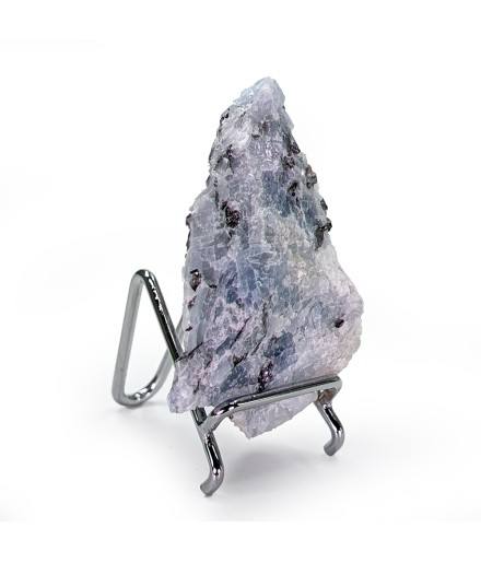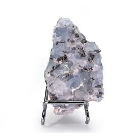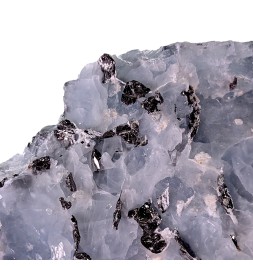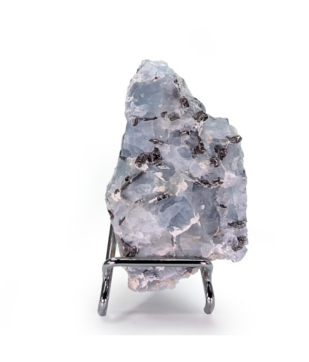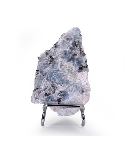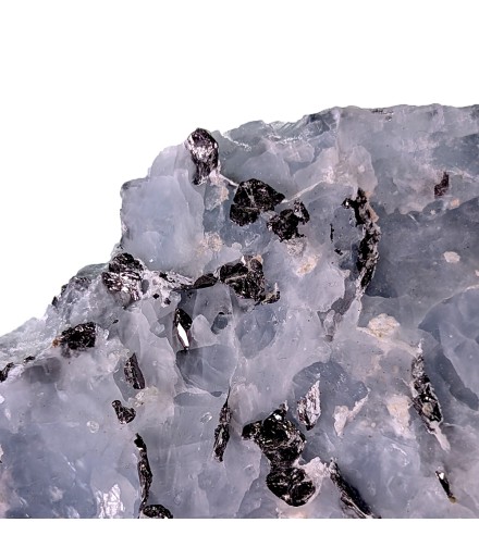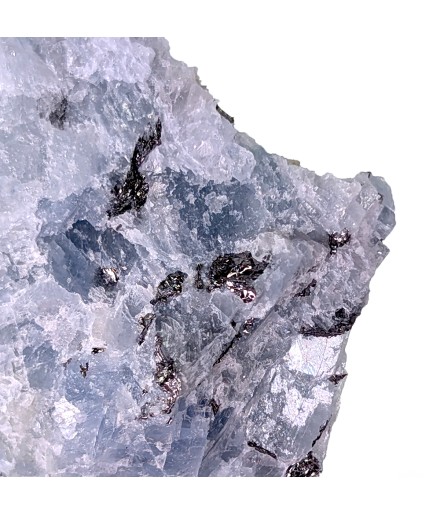 Intéressante pièce de calcite légèrement bleutée contenant de nombreuses inclusions de graphite gris métallique.