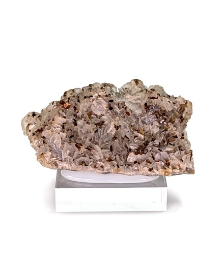 Échantillon de dolomite grise partiellement recouverte par des cristaux millimétriques de pyrrhotite.