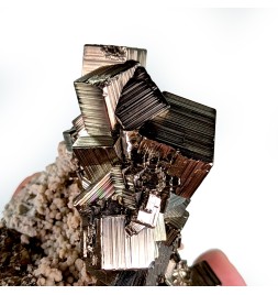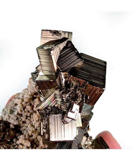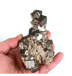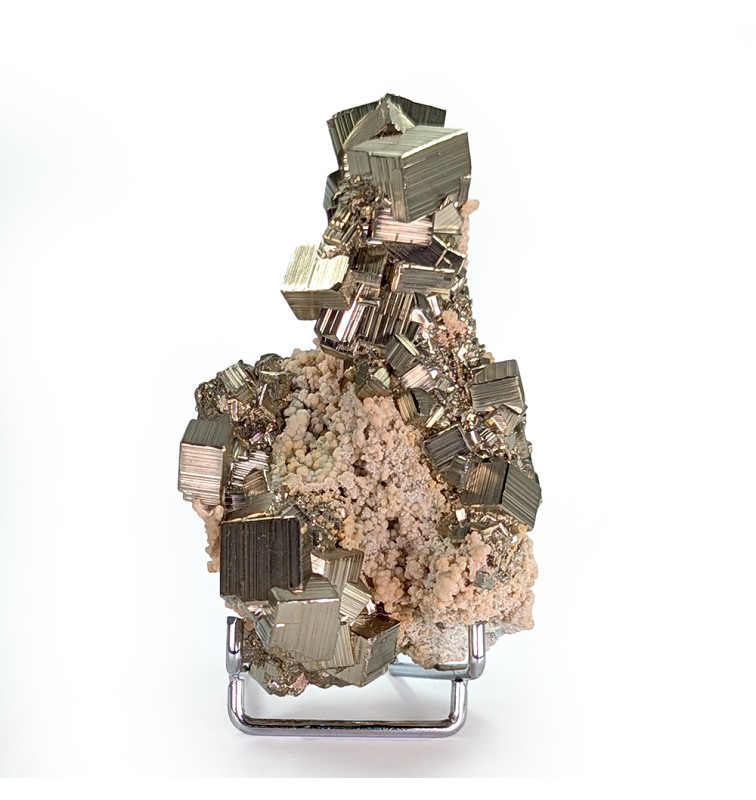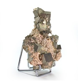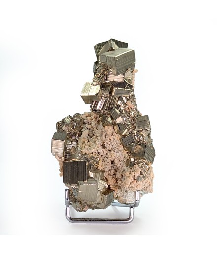 Belle architecture pour cette pyrite avec des cristaux aux arrêtes tronquées et aux faces finement striées.