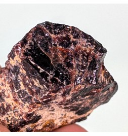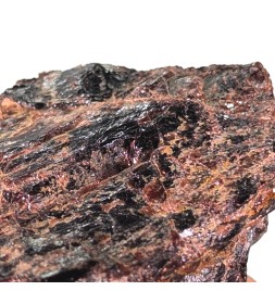 Échantillon brut de tantalite avec de légers reflets rouge almandin.