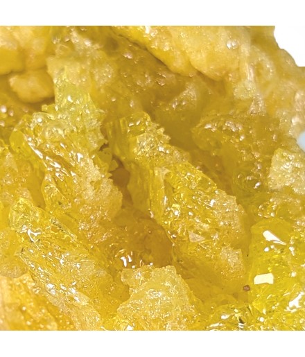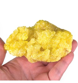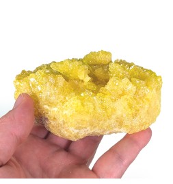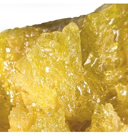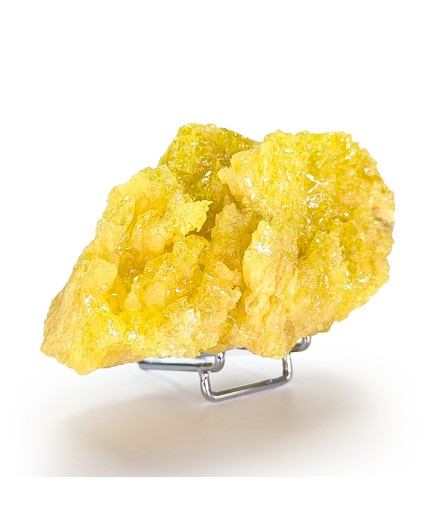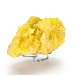 Soufre natif bolivien cristallisé avec une très belle couleur qui met du "peps" dans une vitrine.