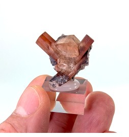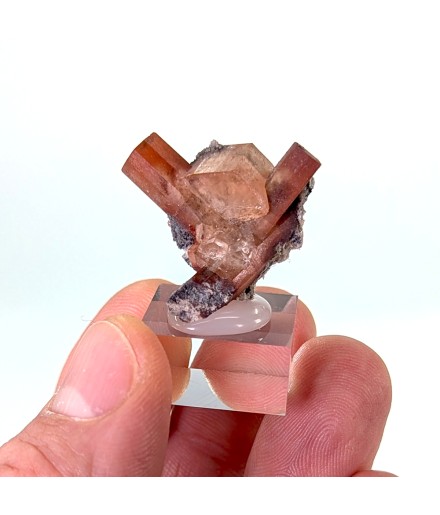 Esthétique miniature présentant trois cristaux terminés de topaze.