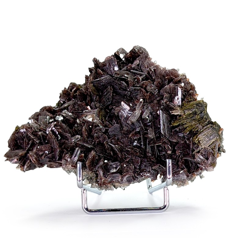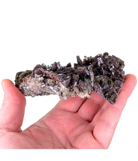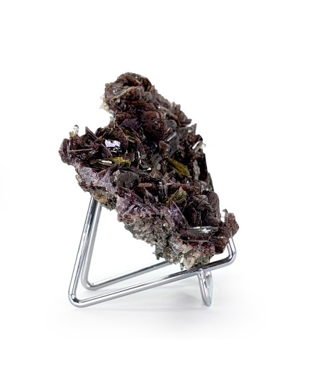 Esthétique axinite brillante, associée à de l'épidote et du quartz. L'arrière est aussi entièrement cristallisé par un mélange de quartz et d'épidote.