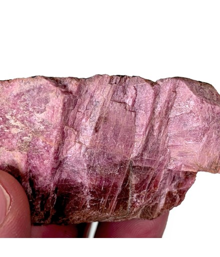 Pièce de pyroxmangite (silicate ayant la même composition chimique que celle de la rhodonite) partiellement cristallisée de couleur rose.