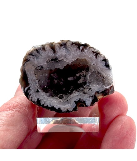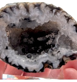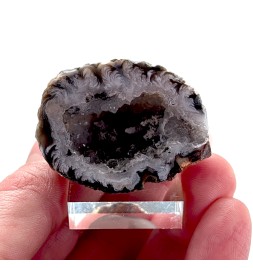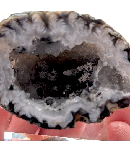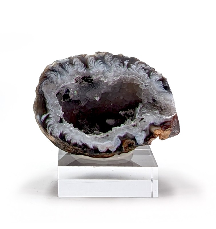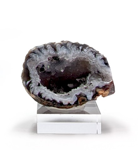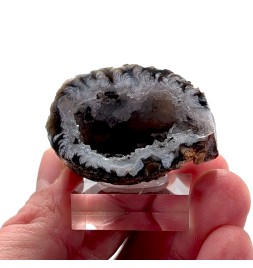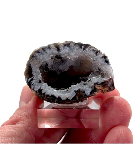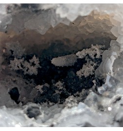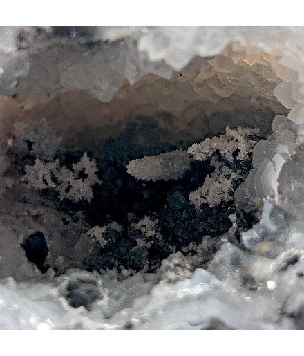 Difficile de faire plus classique qu'une géodinos (petite géode d'agate/quartz), mais celle ci a un petit trésor cristallisé caché dedans.