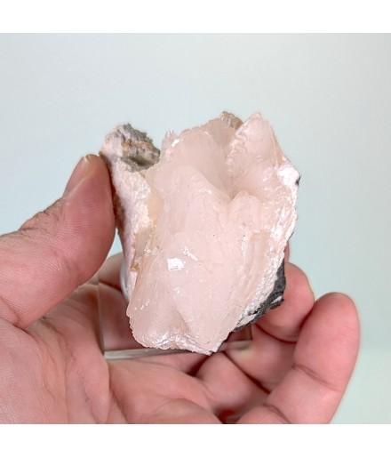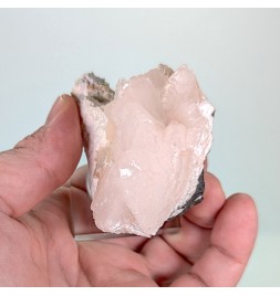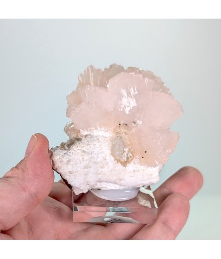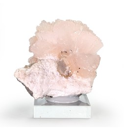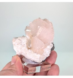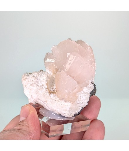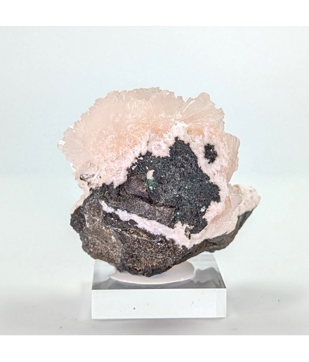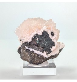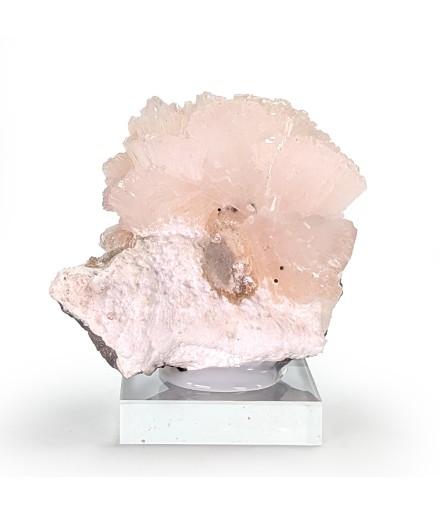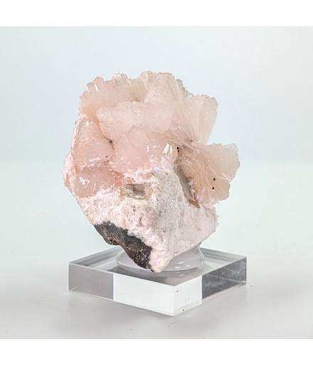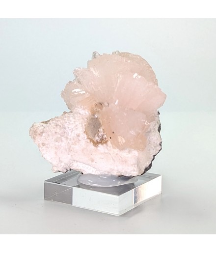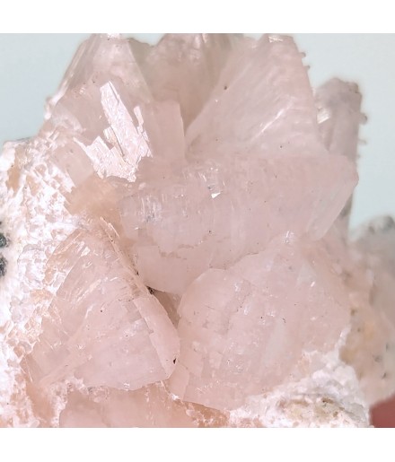 Esthétique stilbite sur gangue avec des cristaux rosés et brillants.