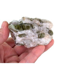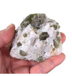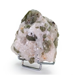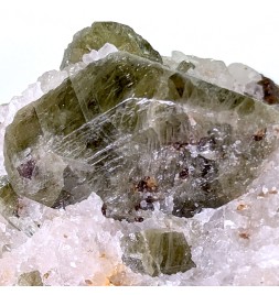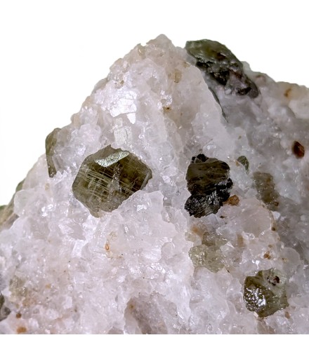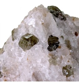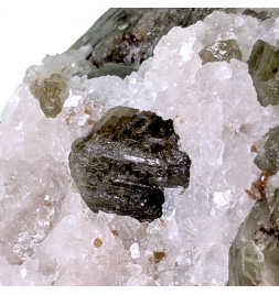 Pièce présentant des cristaux de diopside, dont le plus grand mesure plus de 3 cm, pris dans du quartz.