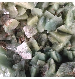 Heulandite à inclusions de céladonite verte, avec des reflets nacrés.