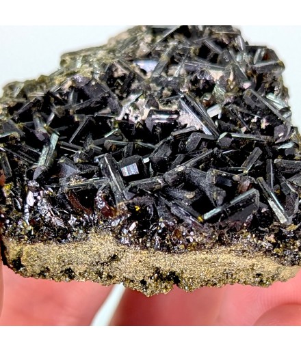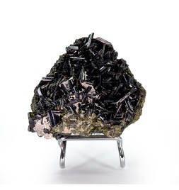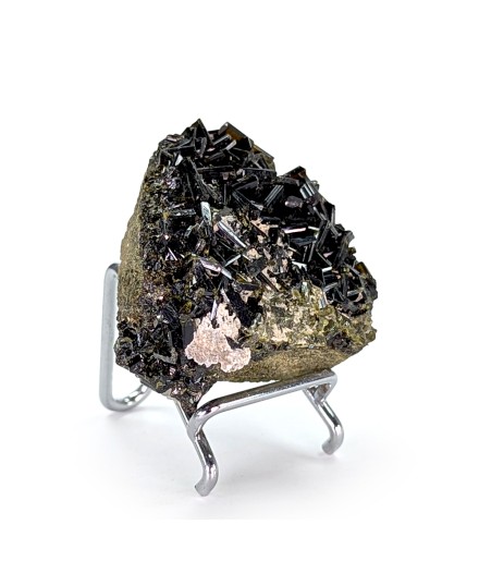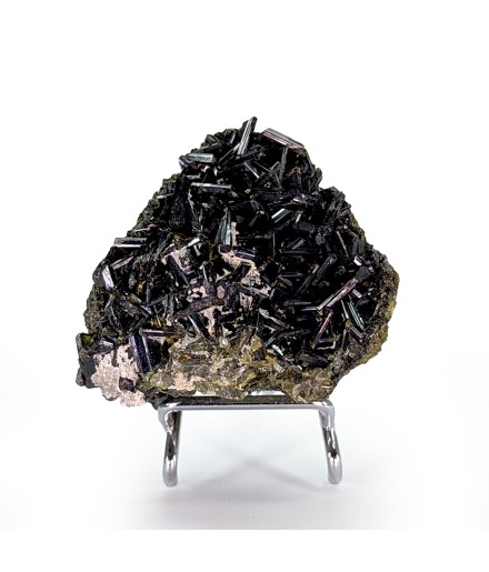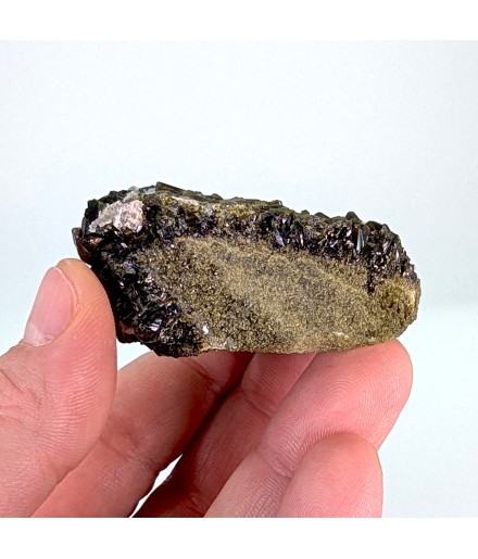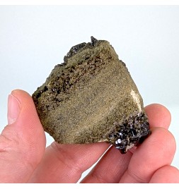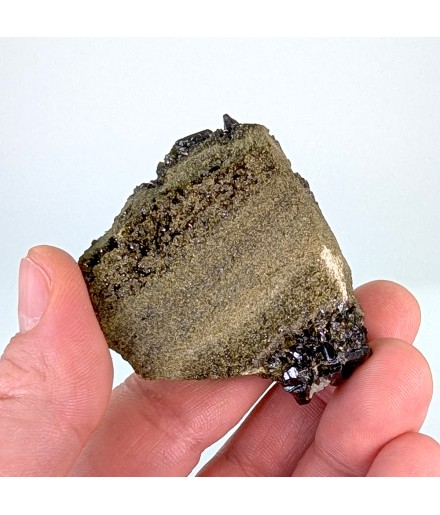 Échantillon d'épidote brillante, avec des cristaux de couleur vert foncé.