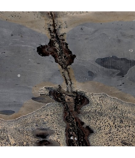 Grande plaque de pierre paysage naturelle, aussi appelée Guohua stone, évoquant des paysages naturels.