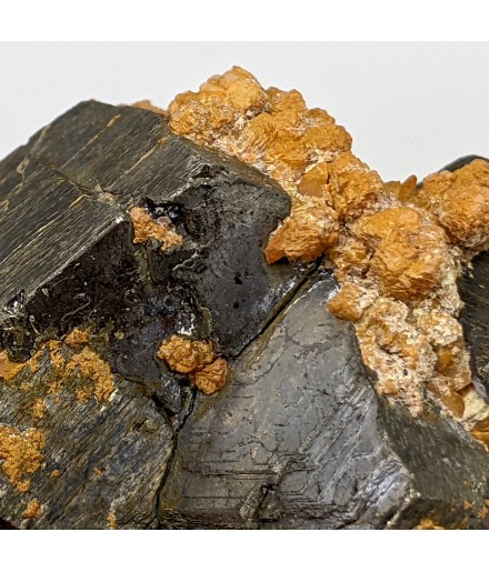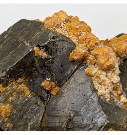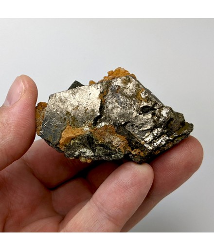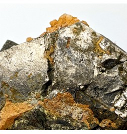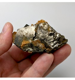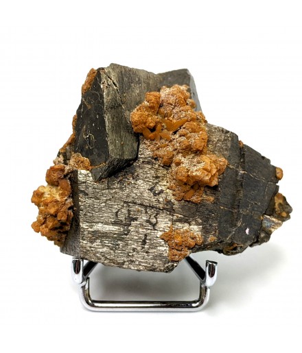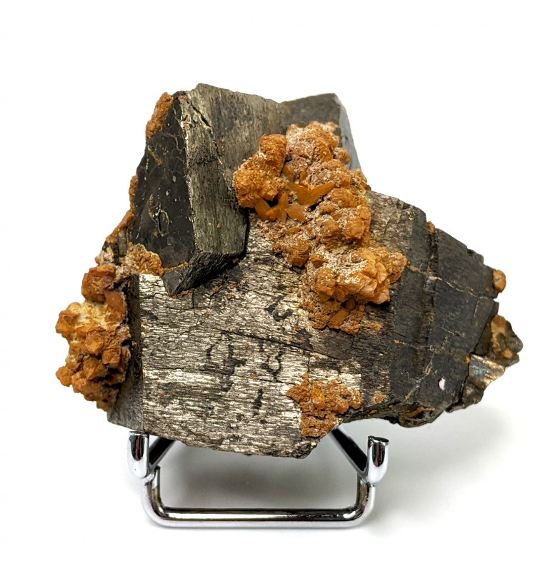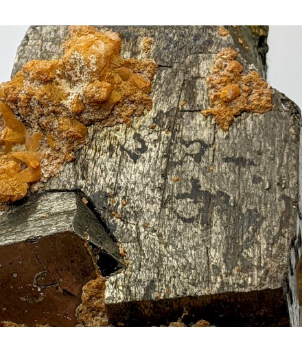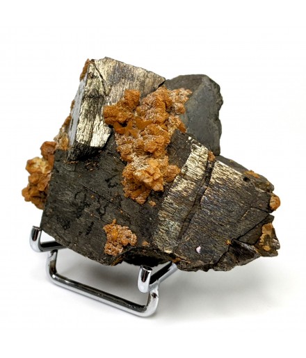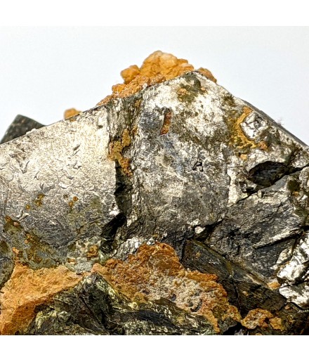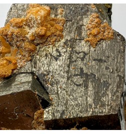 Ancien échantillon de pyrrhotite patinée avec un peu de quartz orangé.