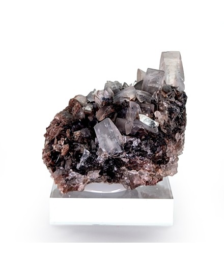 Baryte avec une agréable présentation, mettant en valeur des cristaux gris-rouge.