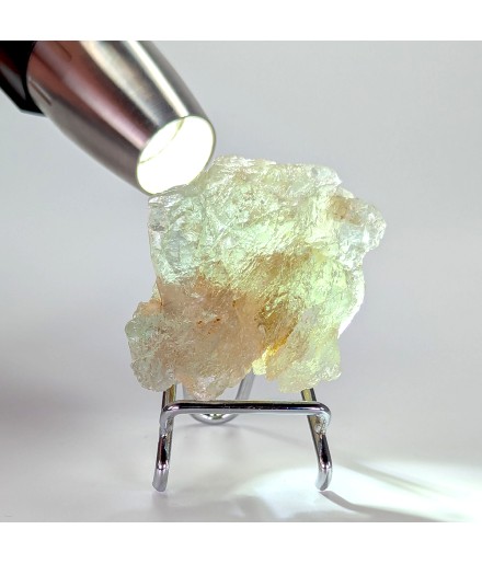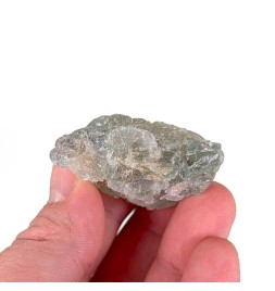 Échantillon de fluorite flottante, verte, avec un aspect fondu typique de ce gisement.