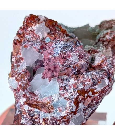 Pièce avec une cristallisation de cupro-adamite de couleur bleue recouverte par de la smithsonite gris clair.