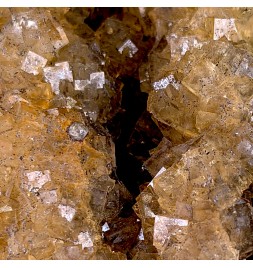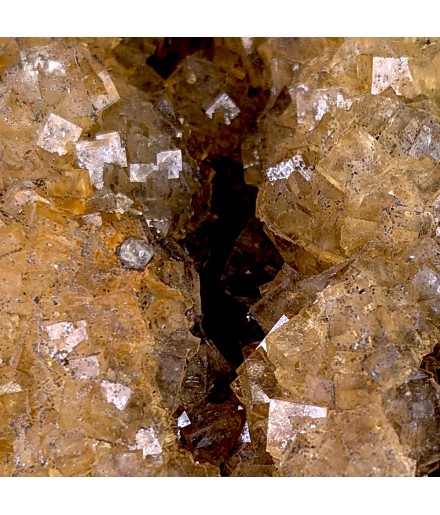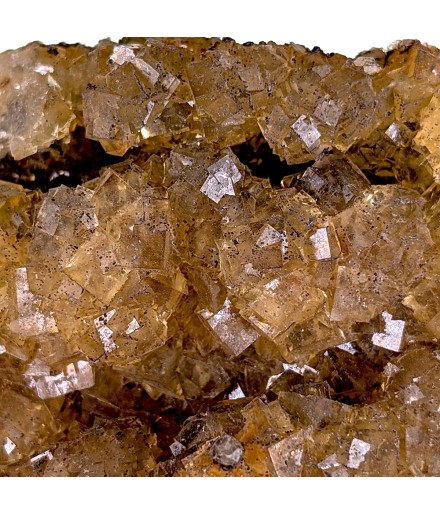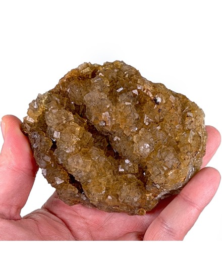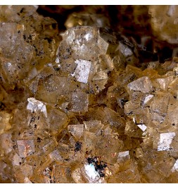 Un classique espagnol avec cette fluorite jaune miel accompagnée par des mouches de pyrite.