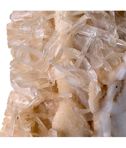 Joli gypse avec des cristaux transparents sur du marbre blanc, signature de ce gisement espagnol.
