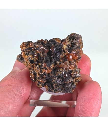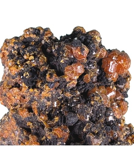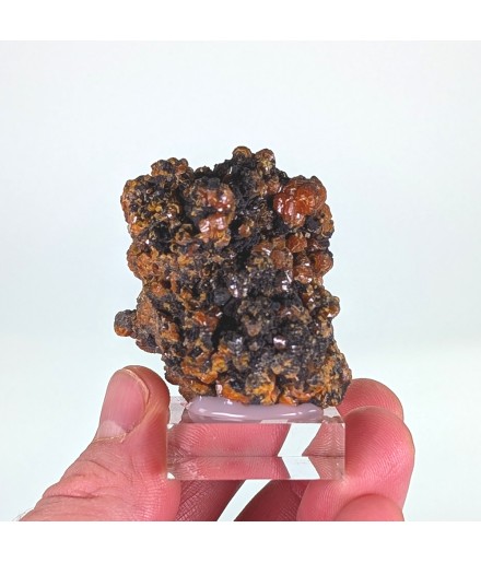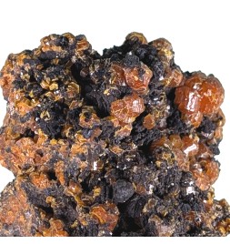 Échantillon de mimétite orange avec le faciès arrondi dit "campylite"