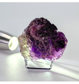 Fluorite flottante, bicolore, avec un aspect fondu typique de ce gisement.