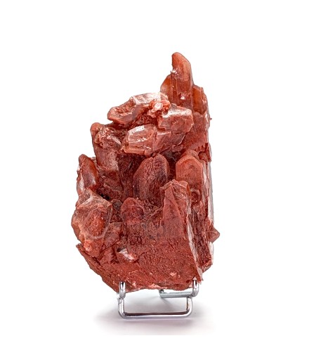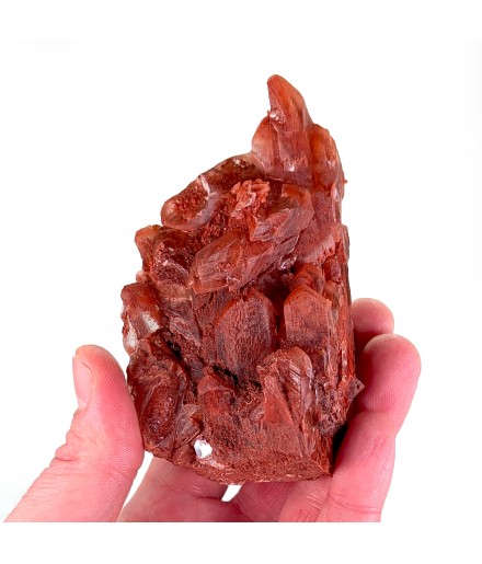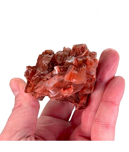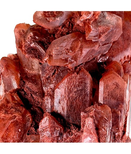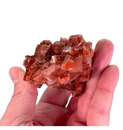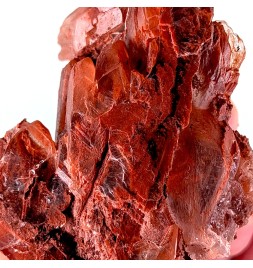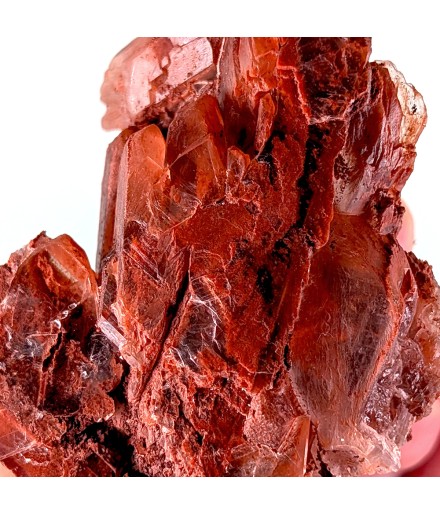 Peu fréquent et d'une couleur remarquable, ce gypse présente de beaux fantômes rouge d'hématite dans les zones clivées.