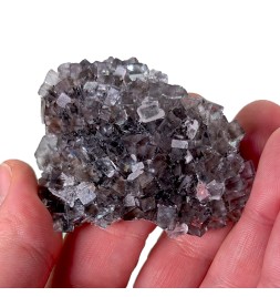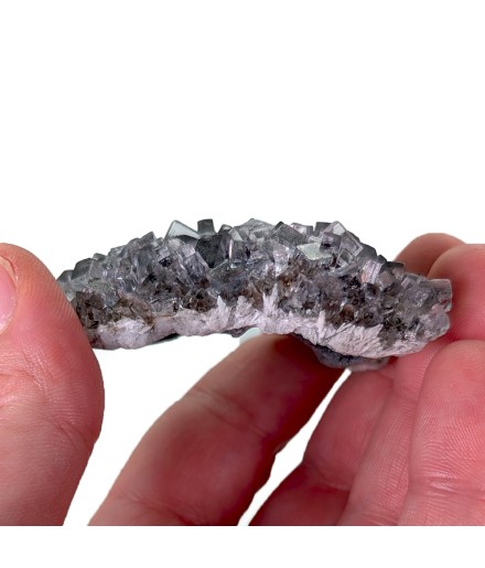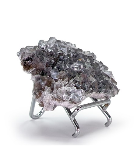 Échantillon délicat de fluorite, avec des cristaux transparents, légèrement violets. A noter de nombreuses cristallisations dites en "briquet".