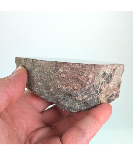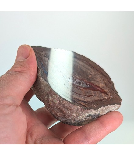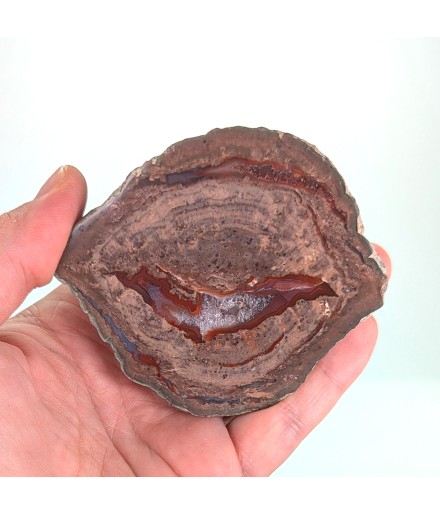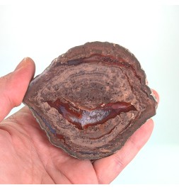 Lithophyse sciée et polie avec un joli "sourire" rouge bien marqué !
