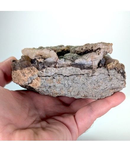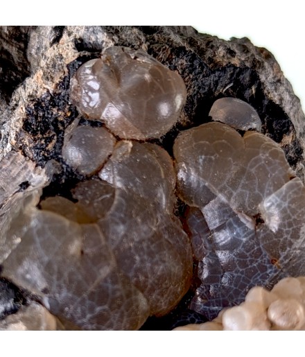 Bel et ancien échantillon de lussatite (opale type C) avec des traces de bitume.