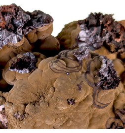 Goethite typique du gisement de Montroc, avec un tapis velouté de couleur verte et des cassures métalliques.