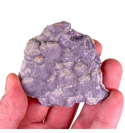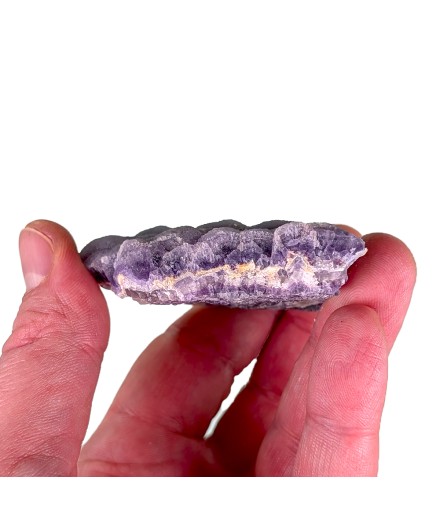 Échantillon de fluorite violette provenant de la mine de Maine-Reclesne, avec une cristallisation d'aspect mamelonné typique de ce gisement.