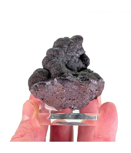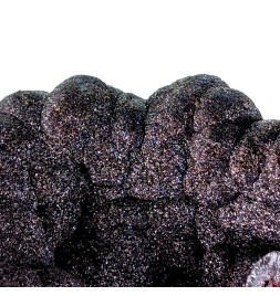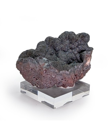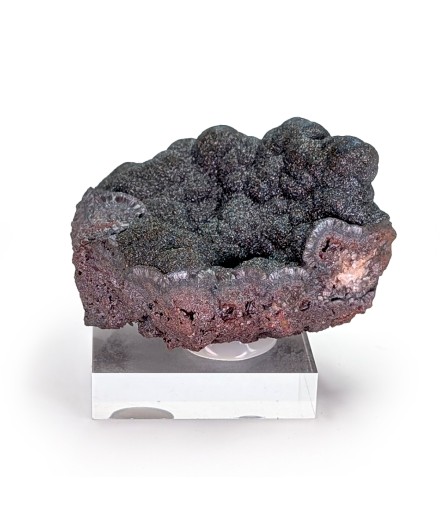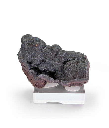 Échantillon de goethite mamelonnée, avec une cristallisation noire satinée.