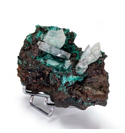 Interesting mineral featuring blue, terminated crystals of baryte, on a deposit of malachite.