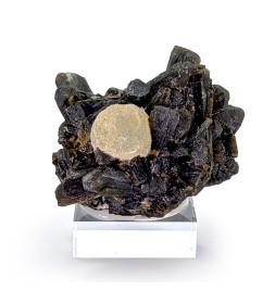 Interesting piece of calcite slightly bluish containing numerous inclusions of graphite metallic grey.