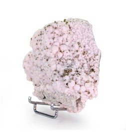 Manganocalcite with a light colour, covered with small pyrite crystals, on a gangue rich in sphalerite.