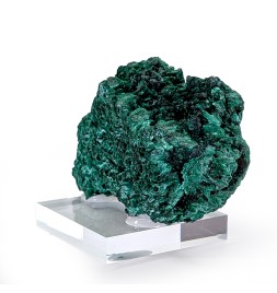 Beautiful fibrous malachite, intensely green in color and with a brilliant sheen, featuring at the top two distinct orientations of well-individualized fiber bundles.