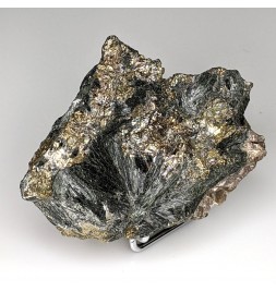 Sample of very good quality ofhedenbergite, with a dark green aesthetically contrasted by the gold of the pyrite.