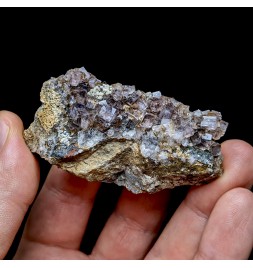 Fluorite lavender in color, crystallized on both sides. It features several fluorite crystals known as "lighter" and galena.