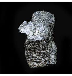 Rarely offered, sample of native lead in the form of a partially tarnished sheet resting on a matrix of epidotite (rock formed almost entirely of crystallized epidote).