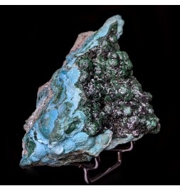 Piece associating on a bed of chrysocolla of the malachite shiny and a partial covering ofheterogenite.