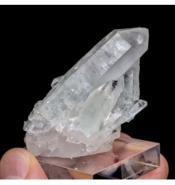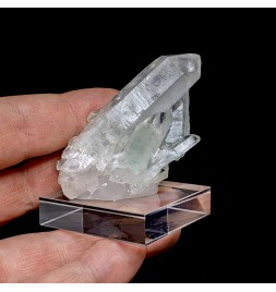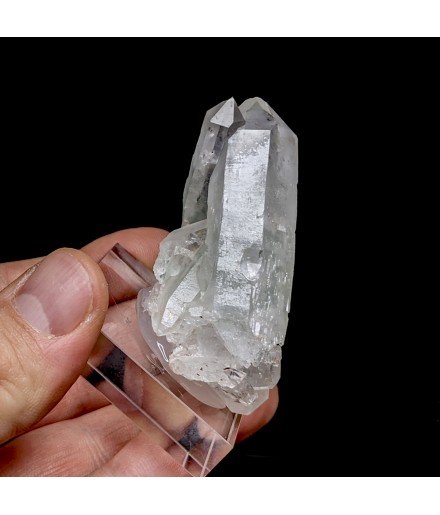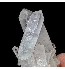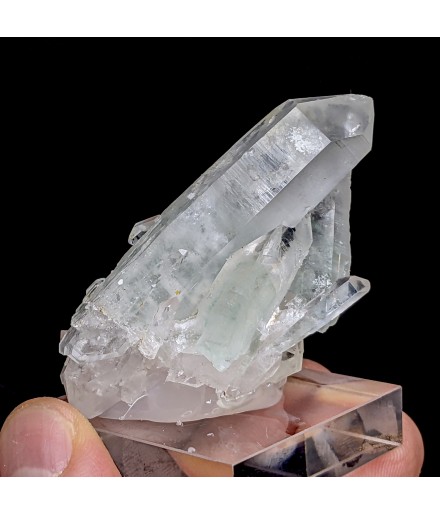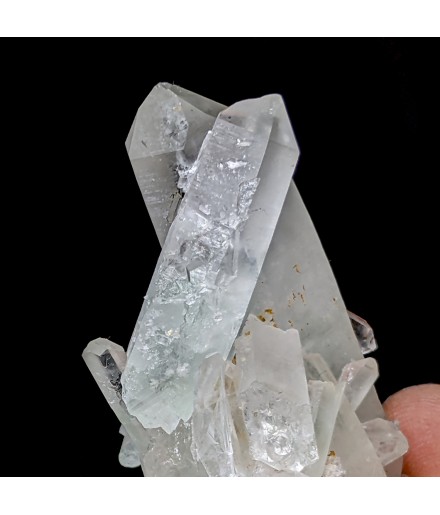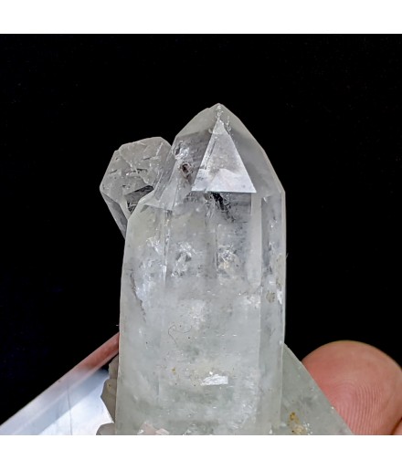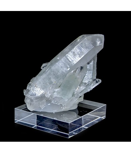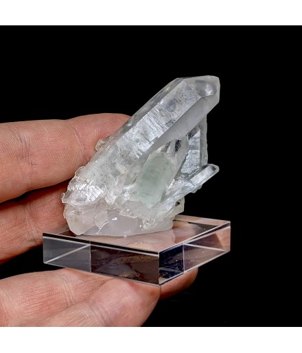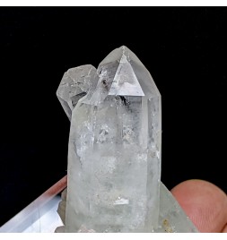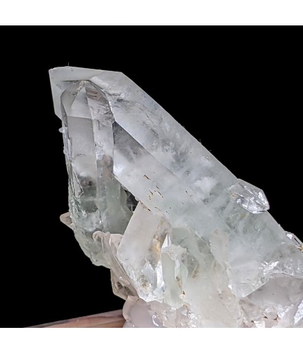 Group of crystals of quartz with inclusion of fuchsite at the base of the crystals, giving a slight green color to the piece.