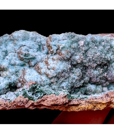 Long piece showing some chrysocolla after malachite made shiny by a fine over-crystallization of quartz.